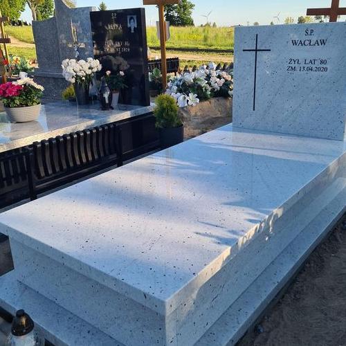Pomniki tego rodzaju przeznaczone są na jednoosobowe groby ziemne. Zamówienia tego typu realizujemy w dowolnym wzorze i z kamienia w wybranym przez Państwa odcieniu. Standardowo nagrobki posiadają obramowanie wokół bryły.